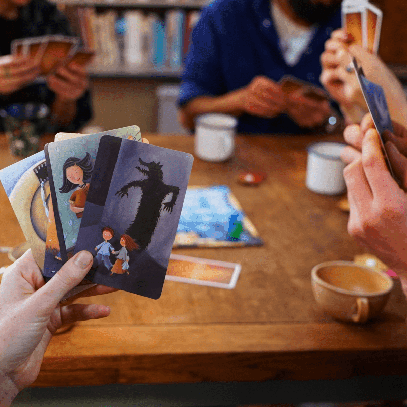 Un joueur conteur sélectionne une carte de sa main et énonce un thème en rapport avec l’illustration. Les autres joueurs choisissent une carte de leur main qui leur évoque ce thème. On mélange puis on révèle toutes les images : les joueurs doivent retrouver la carte du conteur.
